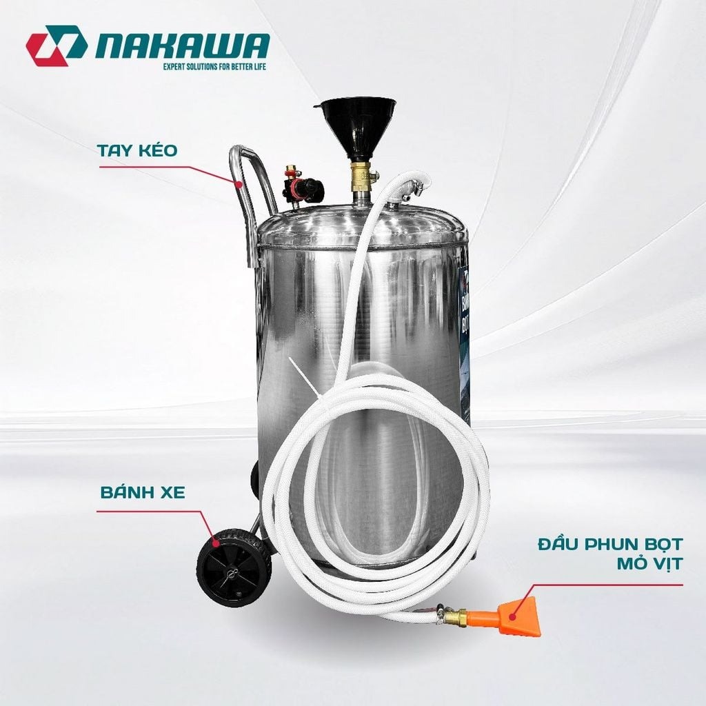 Bình Phun Bọt Tuyết 80L Nakawa BB-80L được làm từ thép không rỉ sét, sử dụng bằng hơi nén tiết kiệm được thời gian khi sử dụng. Giúp rửa sạch tất cả các loại xe ô tô, xe máy một cách nhanh chóng và không cần chạm. Thích hợp cho gara rửa xe ô tô, cửa hàng rửa xe máy chuyên nghiệp.