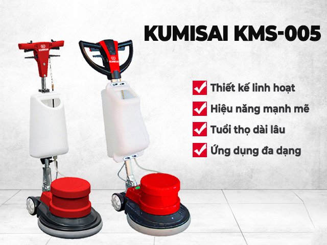 Kumisai KMS-005 – là dòng máy chà sàn đơn rất nổi tiếng của thương hiệu Kumisai trên thị trường và luôn nhận được những phản hồi, đánh giá tích cực từ phía khách hàng. Nhìn chung Kumisai KMS-005 có thiết kế gần giống như những phiên bản trước của nó; chỉ khác về công suất, tốc độ bàn chải.