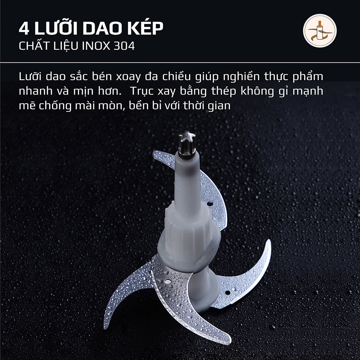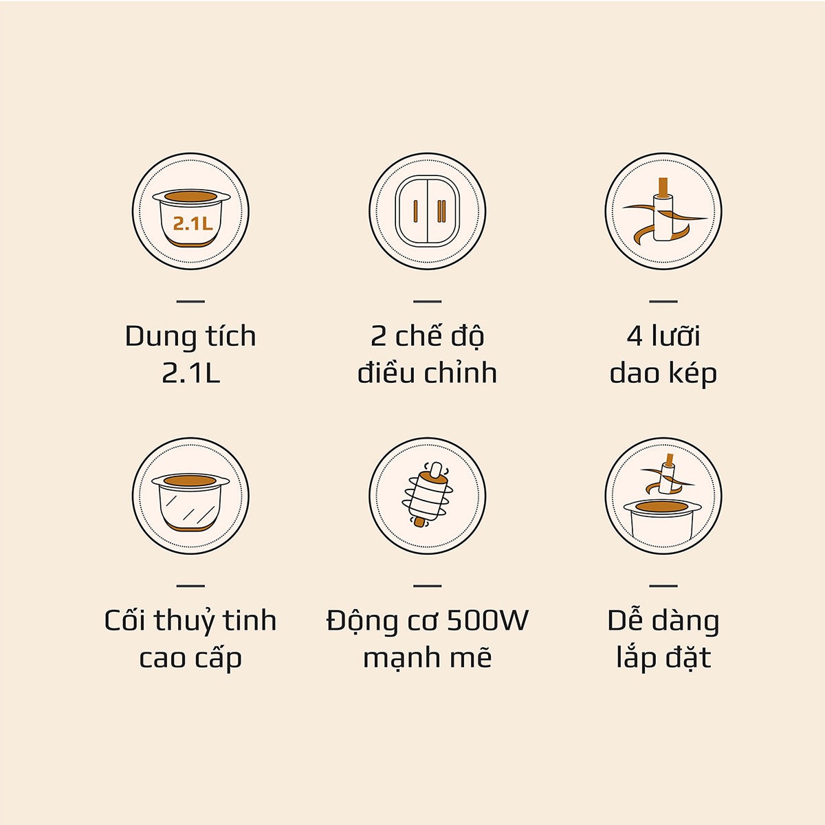 Công suất 500W, động cơ mạnh mẽ, hai chế độ xay I và II như sau:
