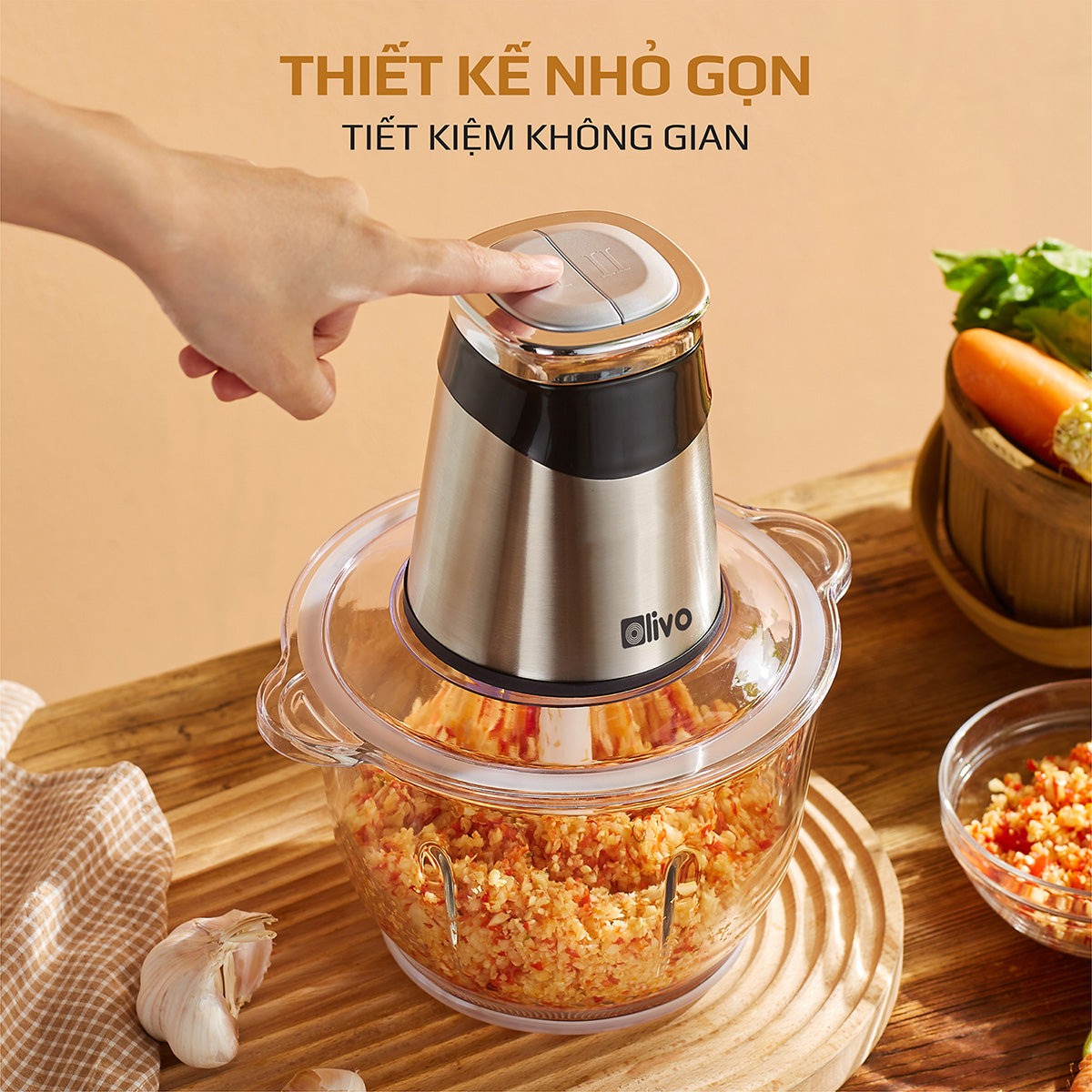 Máy Xay Thực Phẩm Đa Năng OLIVO FC21 - Dung Tích 2.1L - Công Suất 500W Dung tích cối xay lên đến 2.1L có thể xay được lượng thực phẩm lớn, tương đương với 800g thịt cùng một lúc, đủ thực phẩm cho 4-6 người dùng thoải mái, tha hồ thưởng thức nhiều món ngon khác nhau.