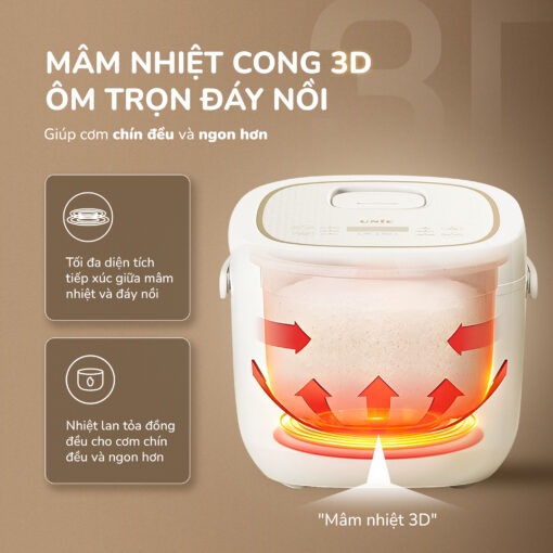 – Mâm nhiệt cong ôm trọn đáy nồi cho cơm chín đều và ngon hơn