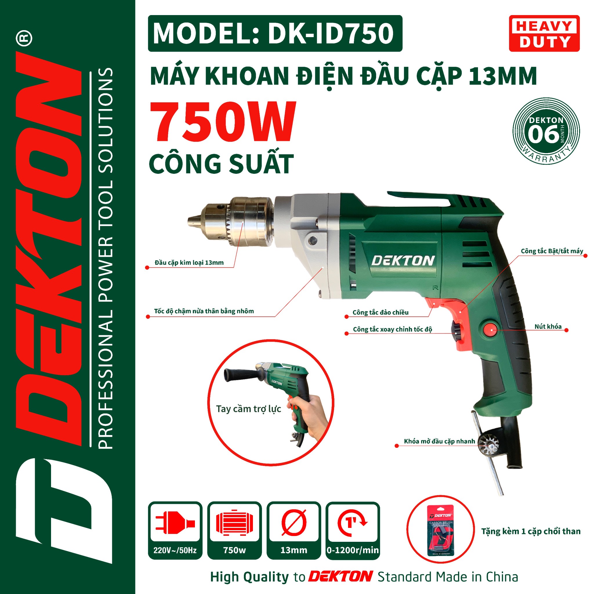 Máy khoan Dekton thiết kế rắn chắc và nhỏ gọn giúp bạn dễ dàng mang theo, di chuyển hay cất giữ vì không chiếm nhiều diện tích, không gây cản trở.