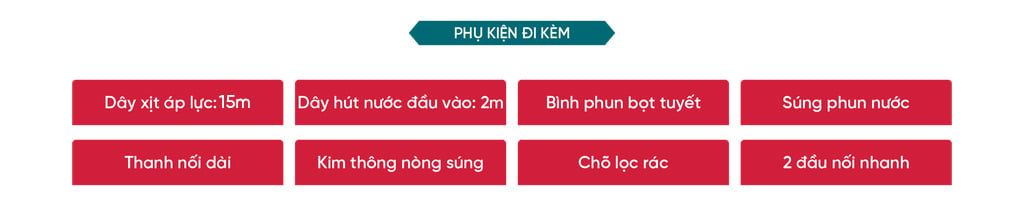 Sử dụng motor 100% dây đồng cảm ứng từ siêu bền bỉ, khỏe khoắn. Ngoài ra, máy còn được trang bị khớp nối bằng đồng chắc chắc cho hiệu suất xịt rửa tối đa. Núm tùy chỉnh áp suất dễ dàng kết hợp cùng với dây phun xịt áp lực dài 15m bọc cao su chắc chắc chống gấp gãy, dễ dàng phun rửa ở nhiều vị trí, đáp ứng được mọi nhu cầu sử dụng.