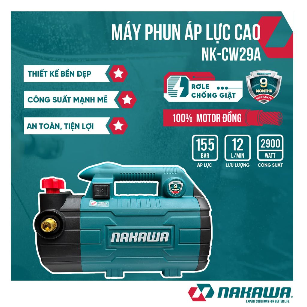 Máy phun áp lực NAKAWA NK-CW29A (có chỉnh áp) hay còn gọi là máy rửa xe áp lực cao được sản xuất theo tiêu chuẩn chất lượng Nhật Bản. Với tính năng vượt trội, máy có có thể đáp ứng được mọi nhu cầu sử dụng của gia đình như: rửa xe máy, xe ô tô, xịt rửa sân vườn, phun tưới cây cối hoặc vệ sinh máy móc, điều hoà...