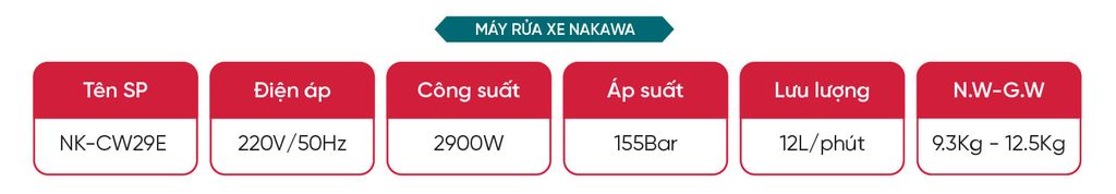 Máy phun áp lực NAKAWA NK-CW29E (không chỉnh áp) hay còn gọi là máy rửa xe áp lực cao được sản xuất theo tiêu chuẩn chất lượng Nhật Bản. Với tính năng vượt trội, máy có có thể đáp ứng được mọi nhu cầu sử dụng của gia đình như: rửa xe máy, xe ô tô, xịt rửa sân vườn, phun tưới cây cối hoặc vệ sinh máy móc, điều hoà...