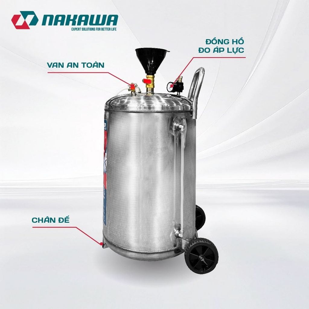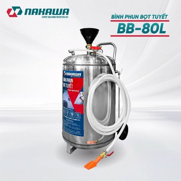 Bình Phun Bọt Tuyết 80L Nakawa BB-80L được làm từ thép không rỉ sét, sử dụng bằng hơi nén tiết kiệm được thời gian khi sử dụng. Giúp rửa sạch tất cả các loại xe ô tô, xe máy một cách nhanh chóng và không cần chạm. Thích hợp cho gara rửa xe ô tô, cửa hàng rửa xe máy chuyên nghiệp.