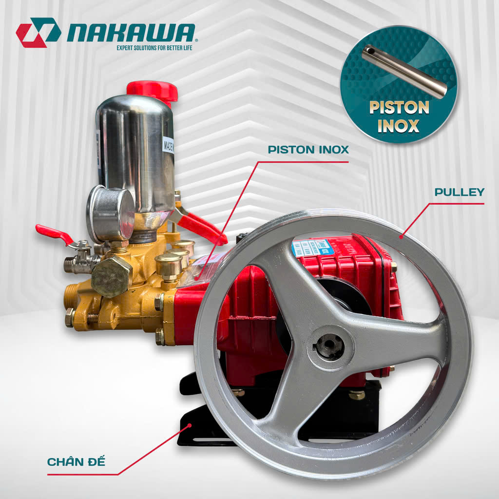 – Thân máy làm từ gang cao cấp, chống gỉ, piston mạ crom có độ sáng bóng cao