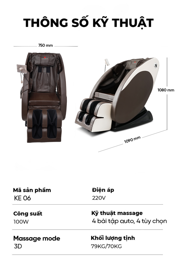 Nếu bạn đang tìm kiếm một chiếc ghế massage “vừa túi tiền” nhưng vẫn đầy đủ công năng hiện đại, đáp ứng được tối đa nhu cầu sử dụng thì King Edo KE06 chính là sự lựa chọn hoàn hảo dành cho bạn. Với những cải tiến công nghệ mang tính đột phá và hàng loạt nâng cấp hiện đại, chiếc ghế này giống như một chuyên gia chăm sóc sức khỏe tại nhà hiểu rõ bạn cần gì và muốn gì giúp bạn tận hưởng phút giây tuyệt vời nhất.