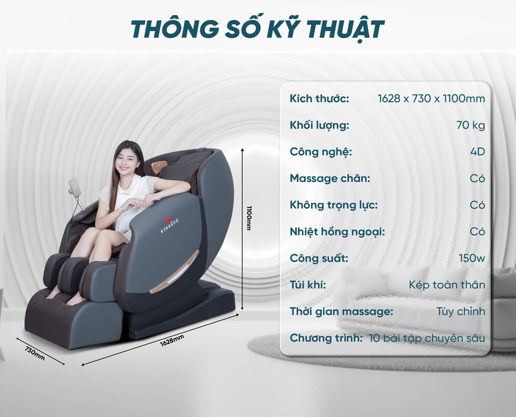 | Kích thước | 1628 x 730 x 1100 mm |