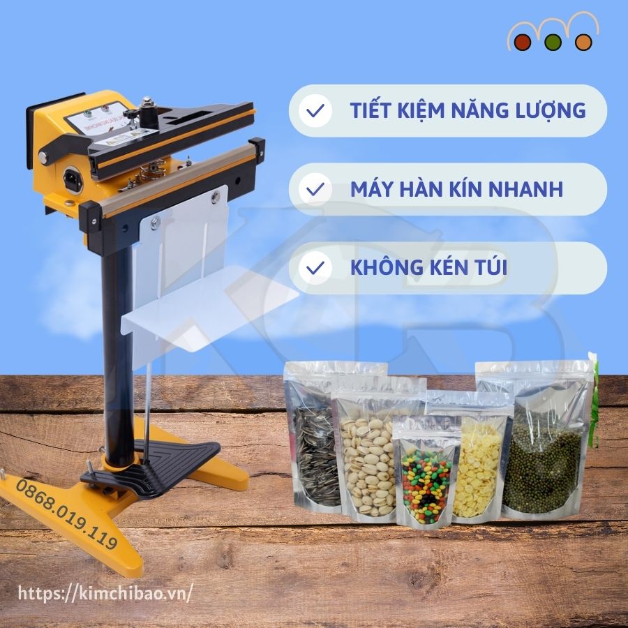 Máy hàn miệng túi dập chân có cấu tạo đơn giản và dễ sử dụng. Bàn đạp chân nhẹ nhàng giúp thao tác nhanh và dễ dàng hơn.