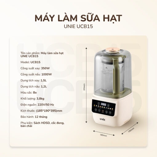 Máy làm sữa hạt UNIE UCB15 là sản phẩm mới nhất ra mắt năm 2025 của thương hiệu UNIE. Được nghiên cứu và phát triển để những tính năng hiện đại, tiện lợi nhất cho người dùng, UCB15 không chỉ là một chiếc máy làm sữa hạt thông thường, sản phẩm thay thế nhiều thiết bị nhà bếp khác, giúp tối ưu không gian, tiết kiệm chi phí và đáp ứng nhu cầu nấu nướng đa dạng của mọi thế hệ trong gia đình. Với công nghệ giảm ồn tối đa lên đến 30%, đa chức năng nấu & hiệu năng tuyệt đỉnh, UNIE UCB15 hứa hẹn mang đến những ly sữa hạt siêu sánh mịn không cần rây lọc & trải nghiệm nấu nướng tiện lợi, tiết kiệm tối đa thời gian.