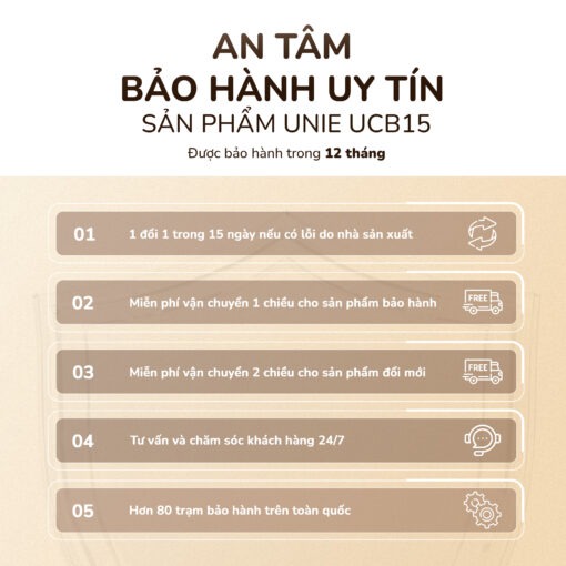 Với những tính năng an toàn vượt trội này, UNIE UCB15 mang đến trải nghiệm sử dụng vừa tiện lợi, vừa an tâm, phù hợp với mọi gia đình, đặc biệt là những gia đình có trẻ nhỏ hoặc người lớn tuổi.