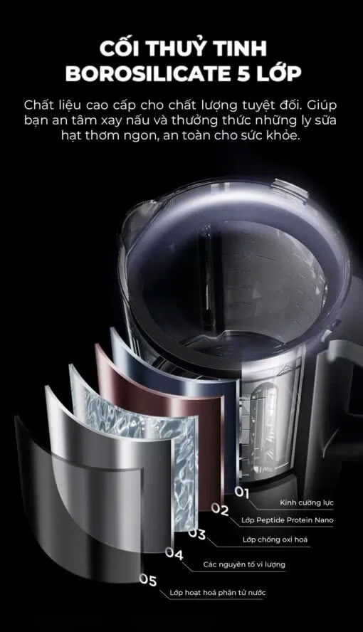 Sở hữu lưỡi dao inox 304 sắc bén kết hợp tốc độ quay 84.000 vòng/ phút, gioăng chống trào tuyệt đối 5 lớp giúp UNIE V9S PRO đã và đang trở thành “tân binh” máy làm sữa hạt mạnh mẽ số 1 thị trường.