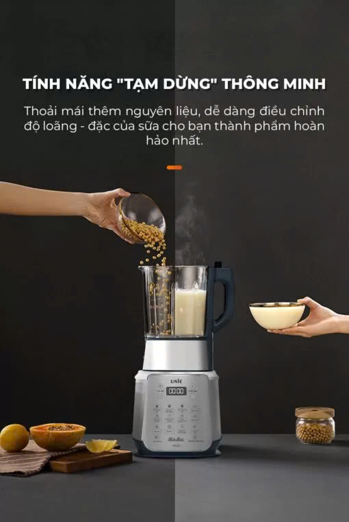 Máy làm sữa hạt UNIE V9S PRO – phiên bản máy làm sữa hạt mới nhất 2024 nâng cấp động cơ có khả năng xay êm xay mịn tuyệt đối. So với các dòng máy phiên bản trước, độ ồn khi V9S PRO hoạt động giảm 50% giúp máy hoạt động êm ái không ảnh hưởng tới các thành viên trong gia đình.