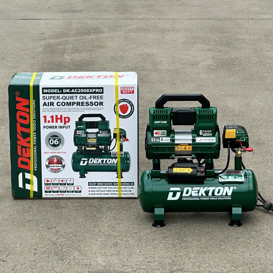 Máy nén khí DEKTON DK-AC2908XPRO có công suất 1.1Hp (800W), cung cấp lưu lượng khí lên tới 150 L/phút và áp lực tối đa 8 Bar, giúp máy nén khí hoạt động ổn định và mạnh mẽ, đáp ứng được nhu cầu sử dụng trong các xưởng cơ khí, sửa chữa ô tô hay các công việc yêu cầu khí nén chuyên dụng.