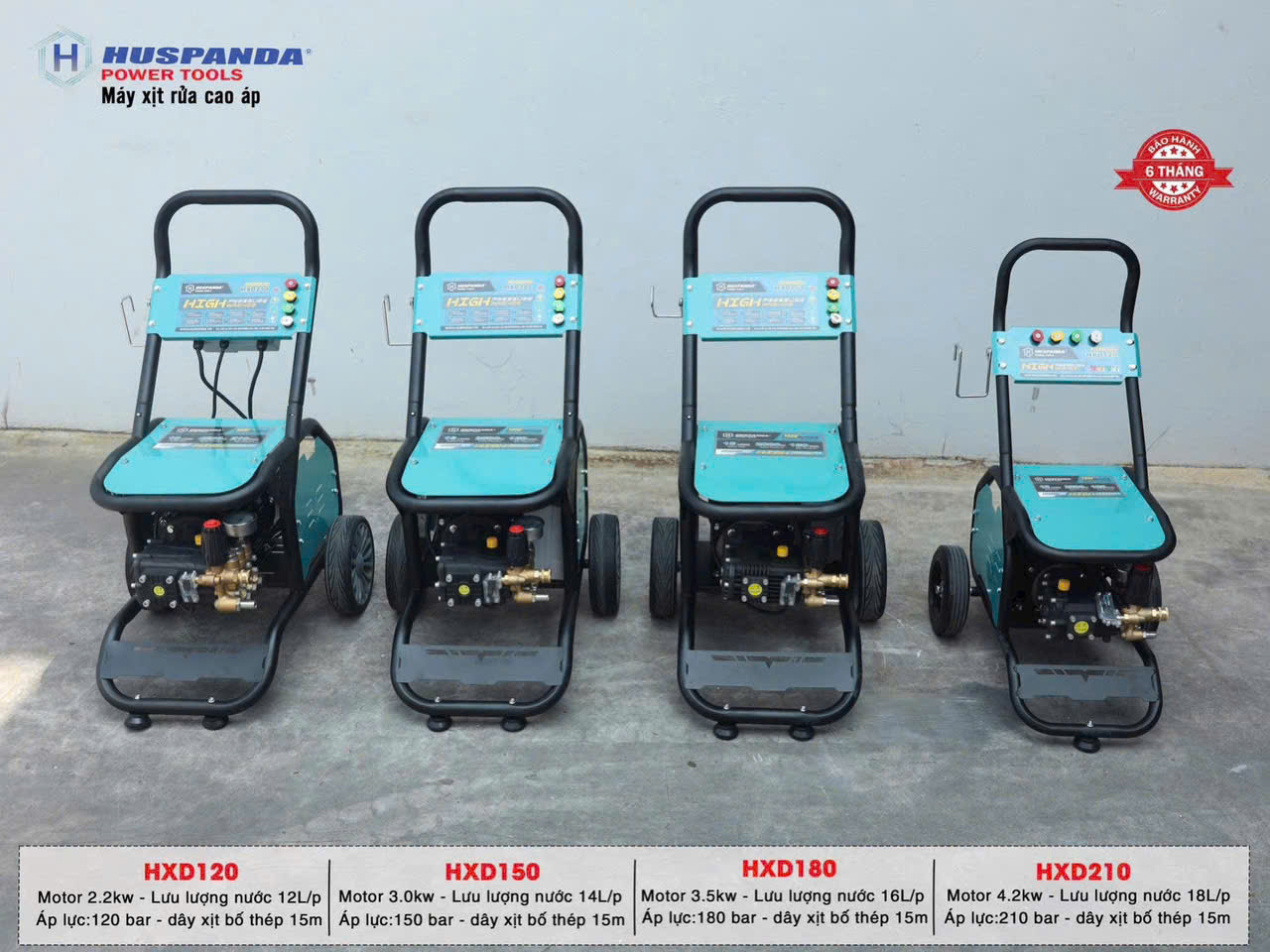 – Huspanda HXD120 hoạt động với công suất 2.2Kw, áp lực 120Bar giúp phun xịt mọi vết bẩn nhanh chóng nhất. Đầu xịt được trang bị piston sứ, motor 100% dây đồng chạy rất bền bỉ.