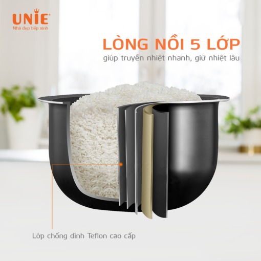 UNIE UE-626 là sự kết hợp hoàn hảo từ thiết kế, công nghệ tới chất liệu sản phẩm để cho ra món cơm dẻo thơm mỗi ngày.Với công nghệ nấu đa chiều 3D nhiệt lượng tỏa ra từ đáy nồi, xung quanh và lên nắp nồi giúp hạn chế tối đa tình trạng cơm nửa sống, nửa chín, nhão, nát.